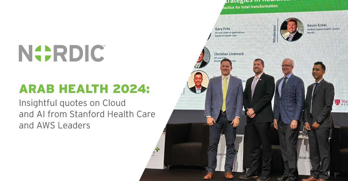 Healthcare leaders are migrating their data, applications, and platforms to the cloud to boost quality, efficiency, and innovation within their organizations. At Arab Health 2024, Kevin Erdal, Managing Director and Global Practice Leader, Digital Health, Nordic, moderated a discussion on the benefits and challenges of cloud deployment and the technology’s impact as a driver of artificial intelligence. The panel featured Amazon Web Services (AWS) Physician Executive Naqi Khan, MD, and Stanford Health Care’s Christian Lindmark, Vice President and Chief Technology Officer, and Gary Fritz, Vice President and Chief of Applications. (Watch the full video below.)