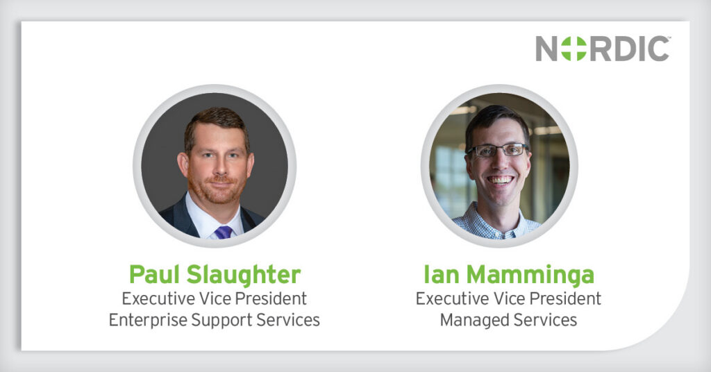 MADISON, Wis. – Nordic Consulting, a global healthcare consulting firm, is proud to announce the hiring of Paul Slaughter as executive vice president of Enterprise Support Services and the promotion of Ian Mamminga to executive vice president of Managed Services. As Nordic continues to expand internationally, Slaughter and Mamminga will serve as key leaders responsible […]